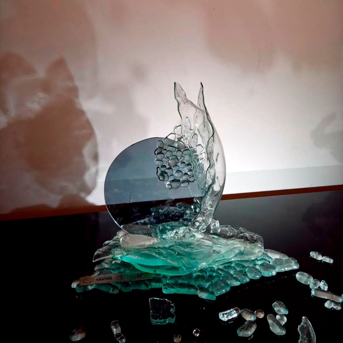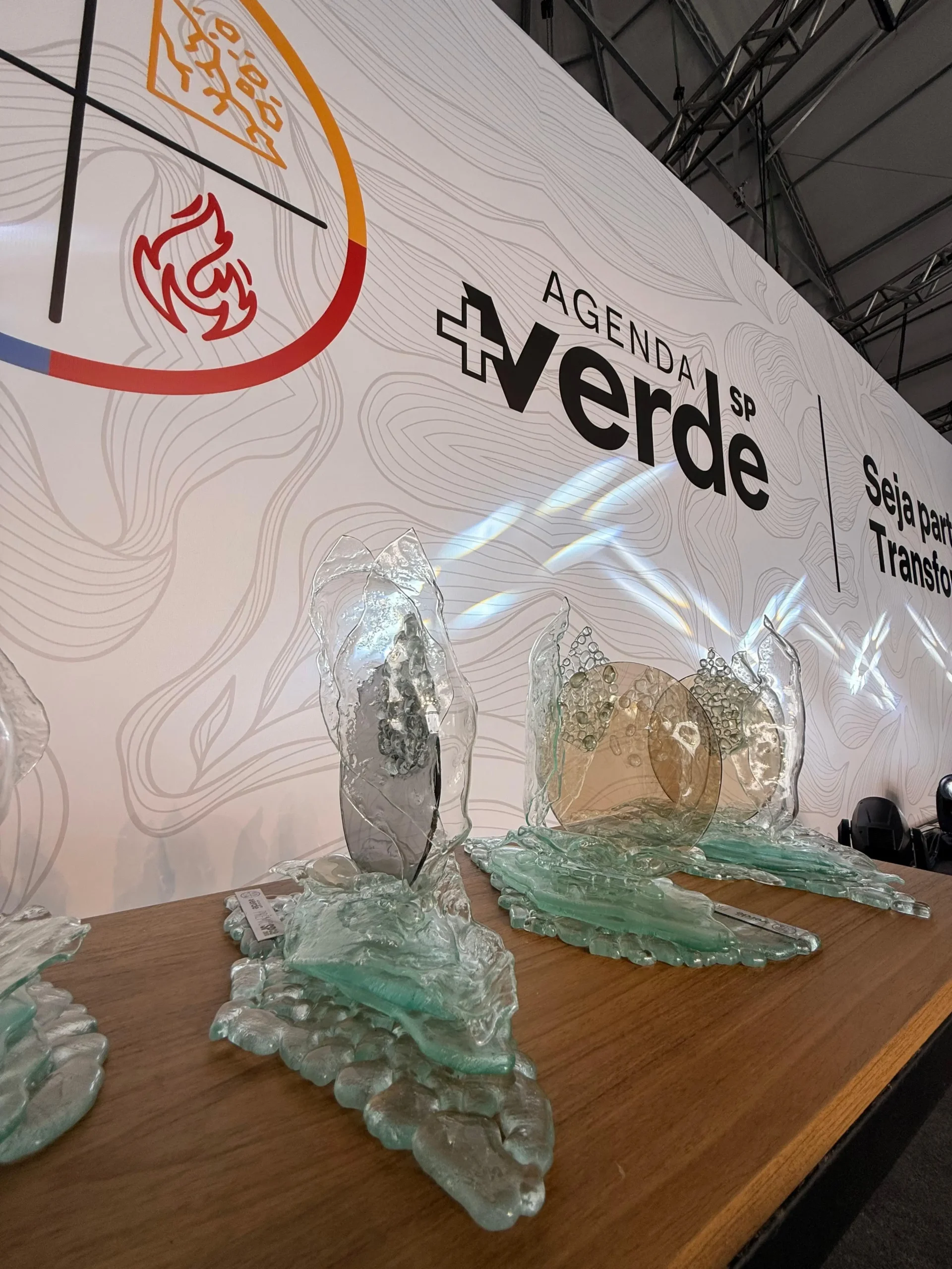 The trophies awarded to the winners were designed by Debora Muszkat and produced in the Paraisópolis community through a glass reuse process, transforming waste into unique pieces and symbolically reinforcing the concept of circularity that guided the entire award.